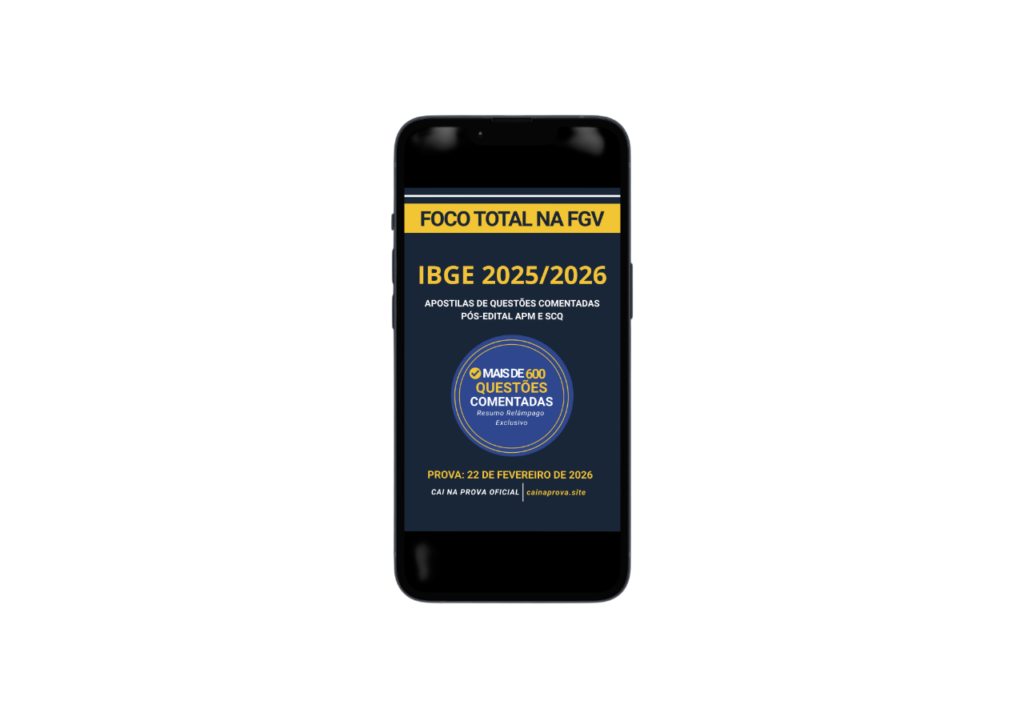 Por apenas R$ 97,00, você não está comprando um arquivo digital. Você está investindo em foco absoluto, segurança total para o dia da prova e a certeza de que está usando o material mais alinhado com o perfil da FGV pós-edital IBGE. Não arrisque o seu futuro e o seu salário com materiais baratos.